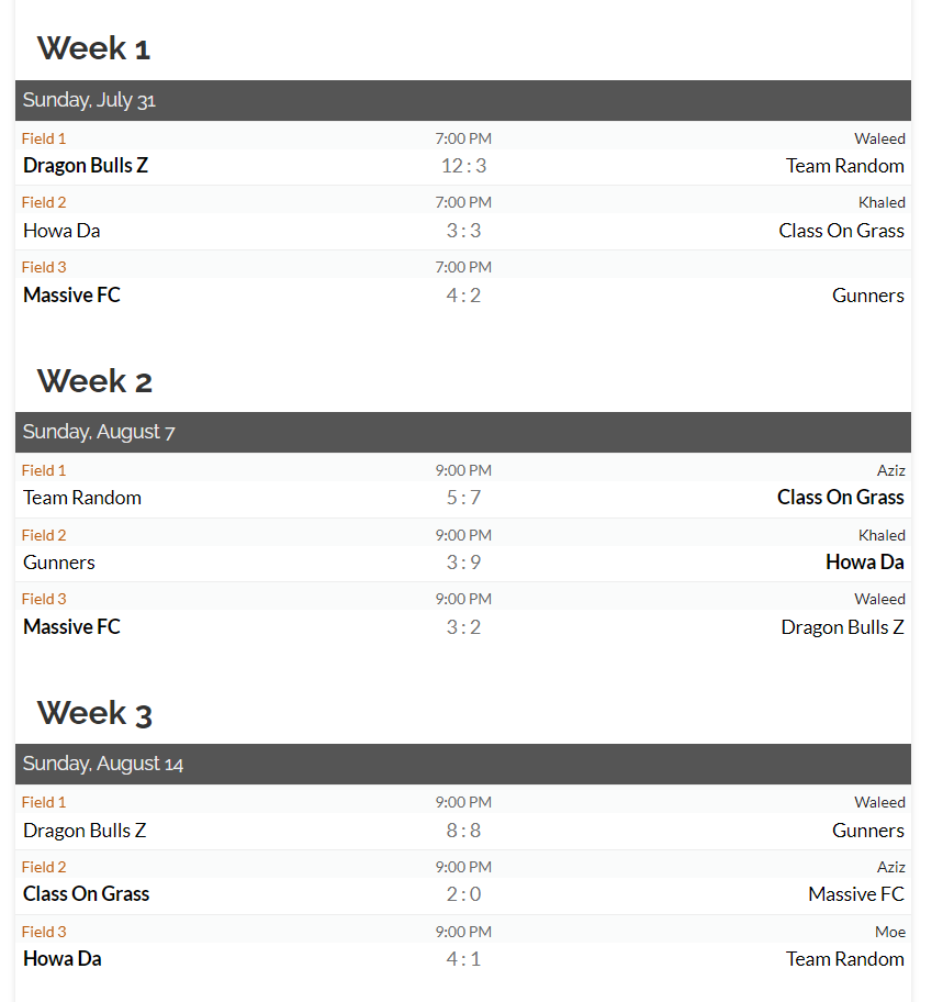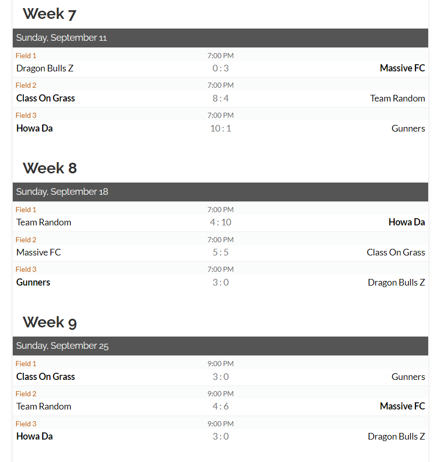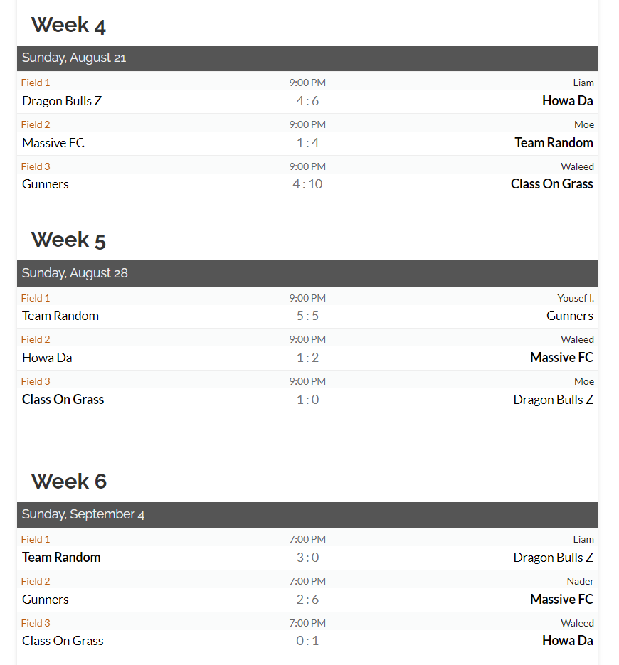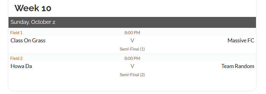 MEN’S DIV B Schedule: